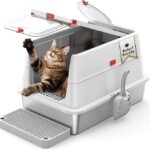 Cat litter box Cat Bedpans Hallway Cat Litter Box Super Large Fully Enclosed Spatter-Proof Litter Box Odor-Proof Litter Proof(Green)