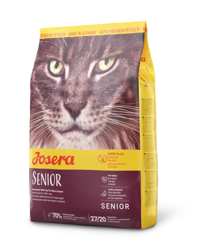JOSERA Senior with reduced phosphorus content and a plus of valuable antioxidants is the ideal feed for cats at a mature age, which need special support during this period.