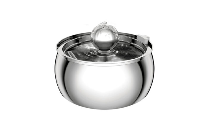 Stainless steel electric fountain for clean, fresh running water.